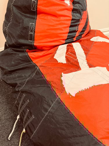 At Kite & Wing we upcycle used kites and wings into unique, functional creations - from bean bags, ottomans and bags to wallets, belts and many other custom pieces.